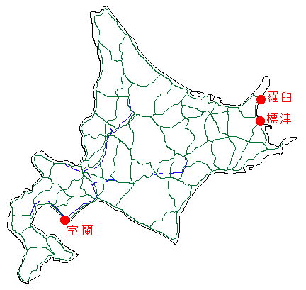 | 羅 臼 | (株)まるみ 01538-8-1313 予約なし:当日8:45に羅臼港にて受け付け、9:00出港、約2時間30分のクル−ジング クジラ・イルカ・シャチなどがウォッチングできる(かも・・・)。 乗船大人8,000円、子供4,000円 (悪天候時欠航) ![]() ![]() | |